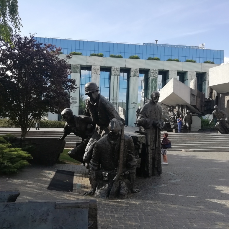 Denkmal des Warschauer Aufstands Die Kämpfer auf diesem Denkmal sind teilweise mit deutschen Wehrmachtsuniformen bekleidet. Am besten erkennbar an den Stahlhelmen. Wiso das? Die Kämpfer mussten sich mit von den Deutschen erbeuteten Waffen und Uniformen ausrüsten. Zur Unterscheidung von den Deutschen trugen sie eine Armbinde