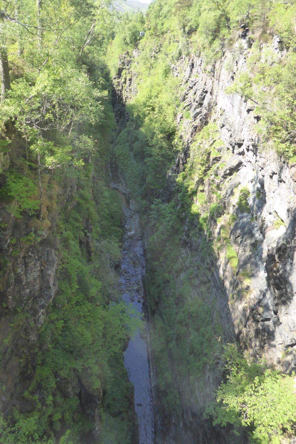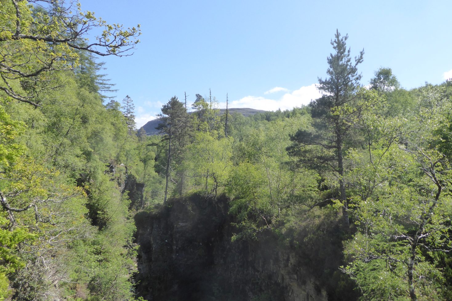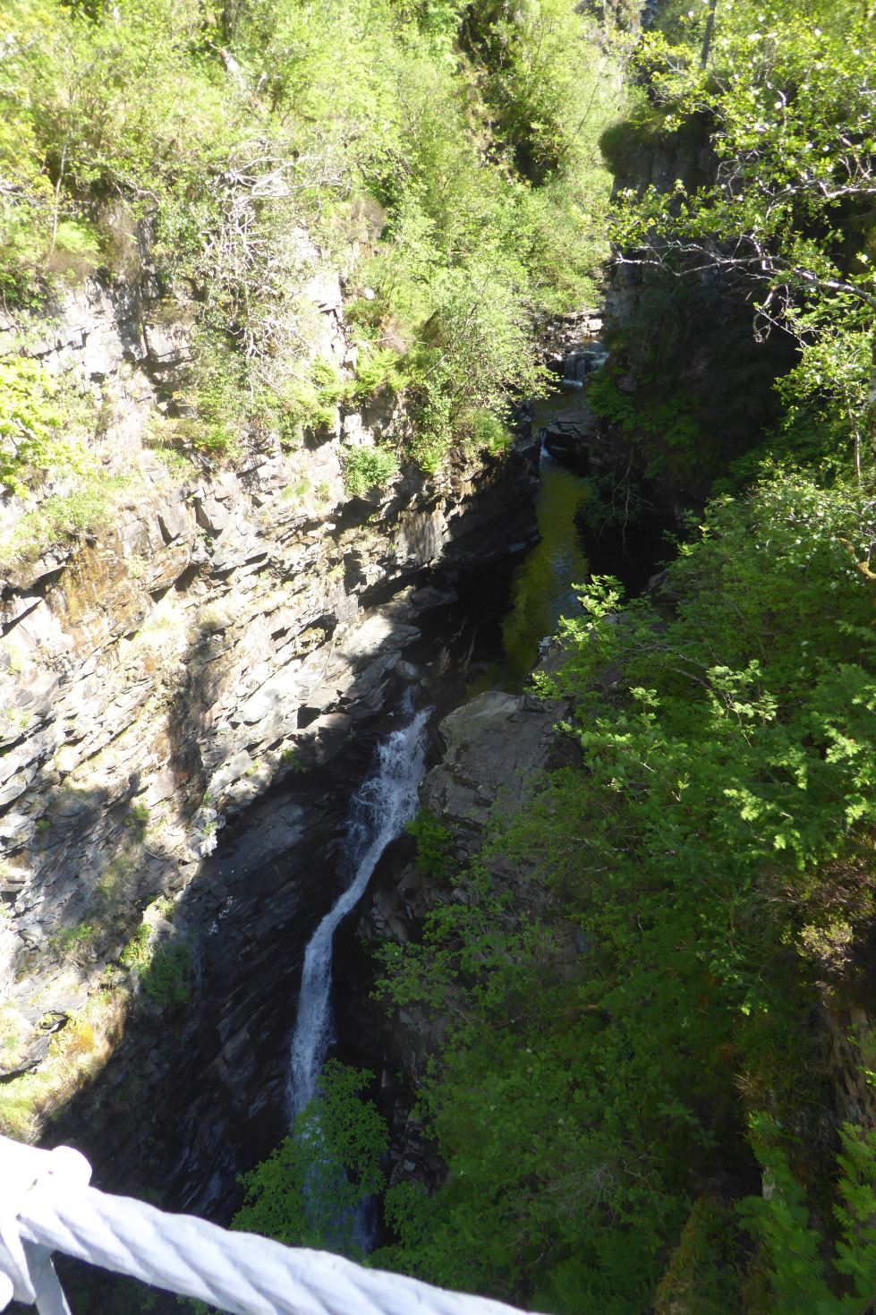 Corrieshalloch Gorge oder Corrieshalloch Gorge National Nature Reserve ist eine Schlucht mit einer Länge von etwa 1,5 km, einer Tiefe von bis zu 60 m und an der oberen Seite teilweise nur 10 m breit. Sie liegt etwa 20 km südöstlich von Ullapool im Ross-shire im Council Area Highland in Schottland. |
