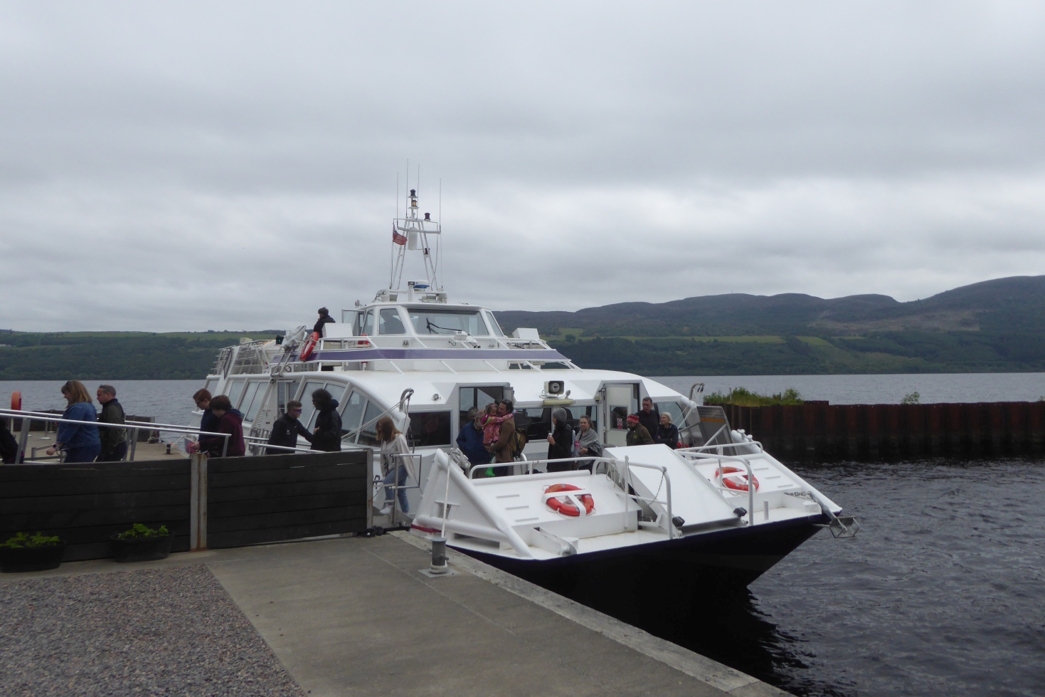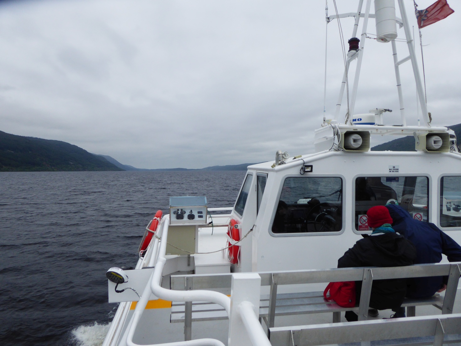 Im Anschluss besteigen wir ein Schiff und tuckern für 22 Euro p.P. 50 min lang auf dem Loch Ness. Wetter ist nicht so gut, aber die Fahrt lohnt sich. ![]() |