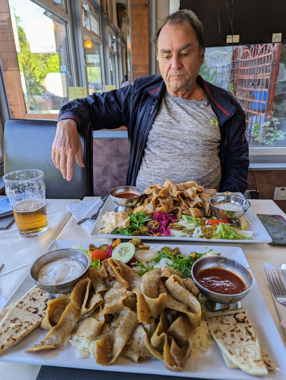 ![]() Abends geht es dann in die Gaststätte. Ein Dönerladen, von wenig türkisch aussehenden Leuten geführt. Furchtbar nett und sie reagieren auf den einzigen Satz, den ich auf bulgarisch kann: Na dwe mesta po dwe Kepabscheta. Also Bulgaren. |