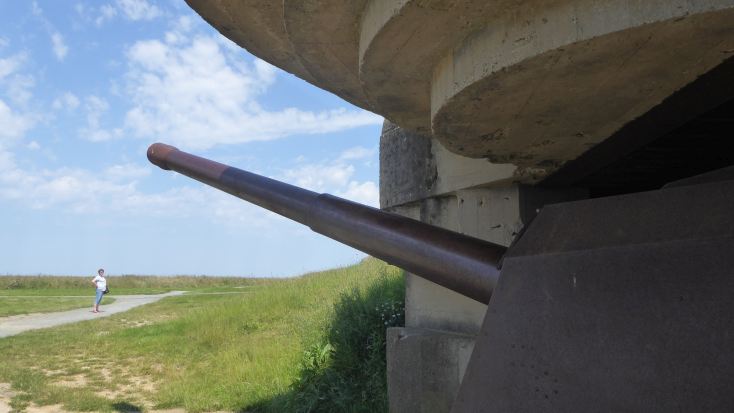 | Die Batterie Longues-sur-Mer ist die einzige deutsche Küstenbatterie des Atlantikwalles mit noch erhaltenen Kanonen in der gesamten Normandie.