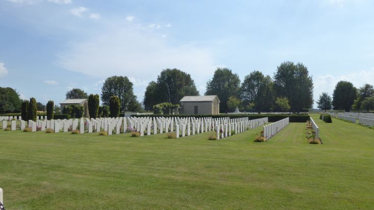 | Meine letzte Berührung mit dem Zweiten Weltkrieg besteht in einem Besuch des englischen Soldatenfriedhofs bei Bayeux. Wenn man die ewigen Reihen von Gräbern sieht, dann reicht es einem auch. Wie sinnlos ist doch Krieg!!! |