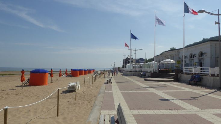 | Erste Station ist Houlgate, klingt sehr englisch und ist ein architektonisches Juwel. Die Häuser sehen lieblich verspielt, der Strand ist aufgeräumt, mit Umkleidemöglichkeiten und schönen Bänken zum Verweilen. Und parken kostet nix! |