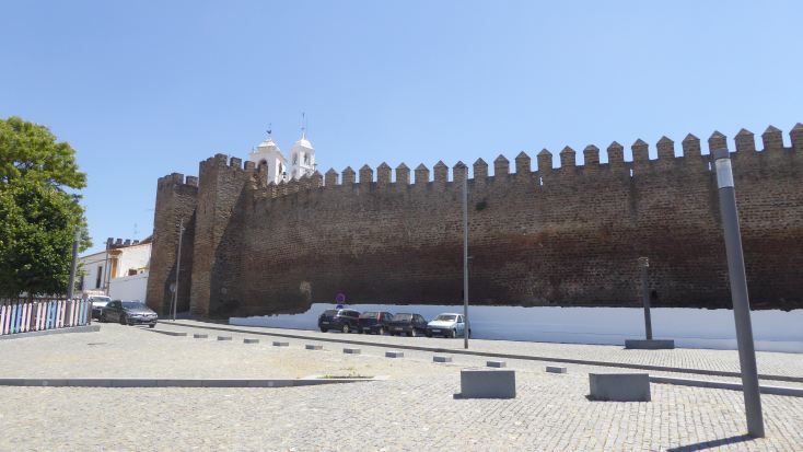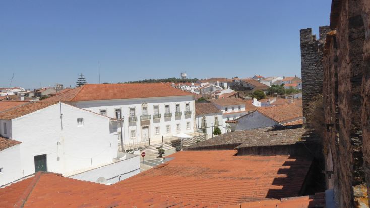 Auf meiner Weiterfahrt tangiere ich Alandroal. Ein weißes Städtchen mit einer auffallend dunklen Burg. Das muss ich sehen. Die Burg nebst Kirche lassen sich gut besichtigen. Kein Eintritt keine Touris. Ich ganz allein auf den Zinnen. |
