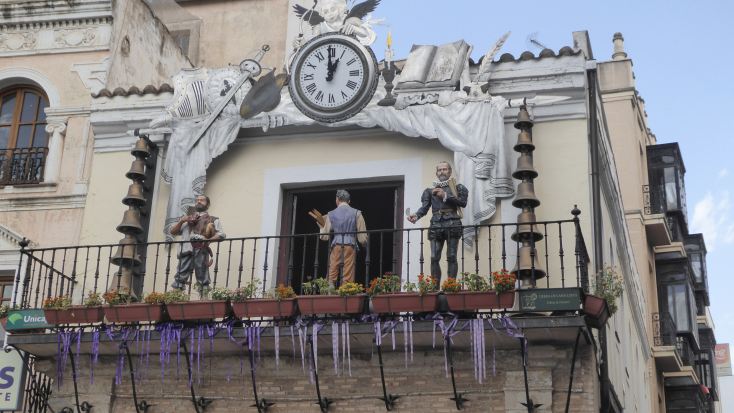 Puerta de Toledo Ein Glockenspiel mit laufenden Figuren auf dem Plaza Mayor. |