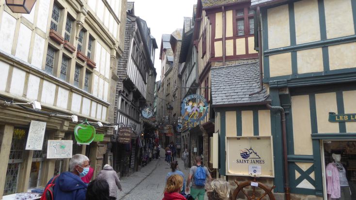 ![]() Die nächste Station ist Mont Saint Michel, eine felsige Insel mit einer Abtei und 55.000 m² groß. Mit dem Auto kommt man nicht hin, ein gigantischer Parkplatz bietet für 5 Euro pro Stunde eine bequeme Abstellmöglichkeit fürs Auto und ein kostenloser Busshuttle fährt einen dann über ein Brücke zur Insel. Oder man läuft. Mit dem Fahrrad kostet der ganze Besuch nichts. Den Berg darf man nur mit Maske besuchen wegen der Coronagefahr. Das Ganze ist so unglaublich märchenhaft dass einem in den ersten Minuten der Glaube fehlt. |