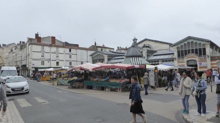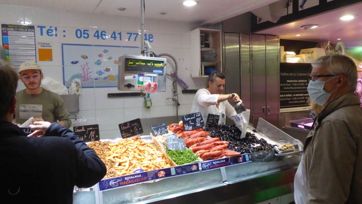 La Rochelle war im 2. Weltkrieg die Operationsbasis der deutschen UBoote. Und es soll ein Museum dazu geben. Das gibt es, es heißt "Bunker" und ist eine Multimediashow, den eigentlichen UBoothafen finde ich auch in Reality nicht. Als erstes treffe ich auf den Wochenmarkt. Buntes Treiben trotz Corona. |