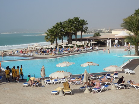 Das Hotel ist höher gelegen, von einem Pool aus kann das Meer beobachtet werden. |