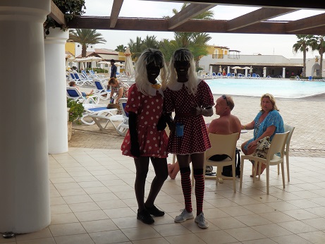 Nachmittags gibt es am Pool Bingo, vorgetragen von zwei lustigen Gesellen mit Frauenperücken. |