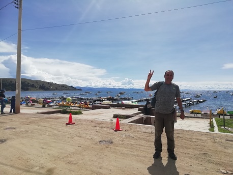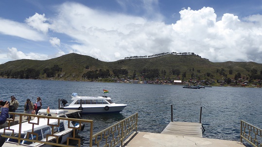 Heute mache ich einen Ausflug zur Sonneninsel, Isla del Sol. 40 Bolivianos fürs Boot, 20 für eine Wanderung, 10 für den Eintritt auf die Insel. | Die Überfahrt dauert jeweils eineinhalb bis zwei Stunden. Der Wind ist recht kaltund die Sonne brennt hier gewaltig. Die Jacke schützt vor dem Wind und dem Sonnenbrand und die Mütze den Kopf vor einem Sonnenstich. | ||