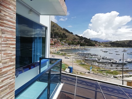 Titicacasee und da das Hotel Lago Azul. Es gestattet im Netz die