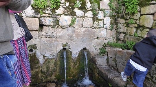 geht es zum Inkabrunnen, drei Löcher aus denen Wasser austrittdas