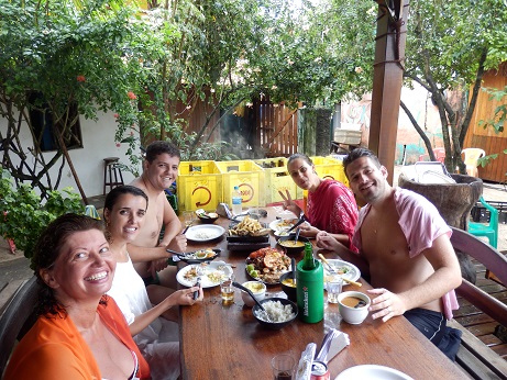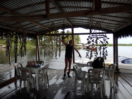 Wir fahren mit dem Boot in einen Ort namens Flor da Lua. Dort wäre sowieso Pause mit Mittag und so. Aber der Skipper legt so an, dass es zur Poliklinik nur wenige hundert Meter sind. Die werden lang, weil es regnet. Ein Brasilianer vom Boot mit Englischkenntnissen begleitet uns. Er ist Lederingenieur und unterhält sich mit uns. In der Poliklinik wird erst gewartet, dann verarztet. Sie müssen Gabis Wunde nähen. Der Dienst am Menschen ist kostenlos, auch für Gringos. Die Ärzte kommen regelmäßig in die kleinen Inselambulanzen und behandeln kostenlos die Kranken. Soviel zum Thema Soziales in der Welt. Der uns begleitende Touri - Brasilianer erzählt von seiner Heimat und von seinen dienstlichen Besuchen in Deutschland. Am regulären Hafen unserer Heimatinsel Morro werden wir wieder an Land gebracht. Es war ein aufregender Tag. Aber so etwas gehört eben im Urlaub dazu. Wir sind glücklich, denn wir haben überlebt. |