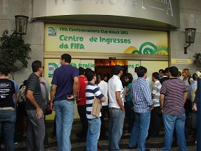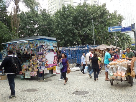 Es geht wieder Richtung Deutschland. 6:00 Uhr geht die Fähre von unserer Urlaubsinsel nach Salvador. Es regnet und ist kalt. Anschließend bringt uns ein Taxi zum Flughafen. Der Flieger startet 14:30 Uhr und landet 16:40 Uhr in Rio. Wir müssen noch mal eine Nacht im sogenannten Hotel Sao Bento überstehen. Zuvor machen wir einen abendlichen Stadtbummel und bewundern eine Ansammlung von Leuten vor dem Theater. Alles Promis, wie es scheint. Der nächste Tag gehört noch einmal Rio. Wir bleiben in der Innenstadt und besichtigen verschiedene Kirchen und einen Wallfahrtsort. Übrigens: abergläubisch ist hier keiner. Man geht auch bei Rot über die Straße. Die Vorfreude auf die bevorstehende Fußball-WM ist allgegenwärtig. |