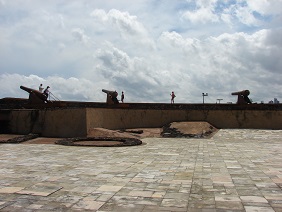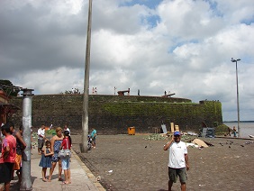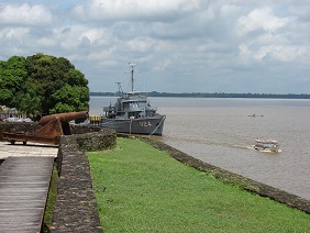 Das Frühstück im Hotel ist etwas gewöhnungsbedürftig aber durchaus nicht schlecht. Heute wollen wir Belem, was wir liebevoll "Plemplem" nennen, trotz des ersten miesen Eindrucks etwas genauer untersuchen. Also rein ins Auto und in die Stadt! Es gibt eine Festung, einen Hafen und einen schönen Park. Das wollen wir uns alles anschauen. Fangen wir mit der Festung an: Was früher mit Kanonen erbeutet wurde, gelingt heute über die Eintrittspreise des Museums. Trotzdem wirkt die Verteidigung der Engländer durch ihre Lage am Amazonas seht interessant. Wir verbringen einige Zeit mit Kaffeetrinken und WC-Besuchen. Irgendetwas tut seine Wirkung. |