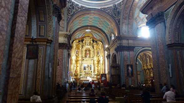 Die Pracht der Barockkirche Kirche La Compañía de Jesús (der Jesuiten) ist überwältigend, aber man darf sich ja auch setzen. |