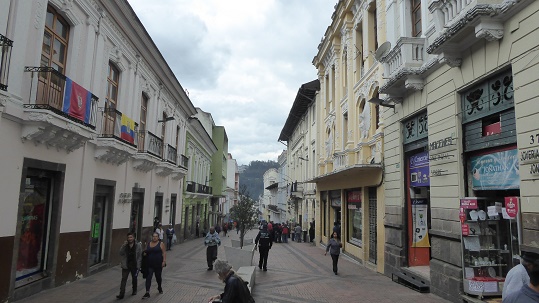 Nach dem Besuch des Marktes habe ich eine Ruhebedürfnis und setze mich an diesem Platz auf eine Bank. Zwei Typen rennen quer über den Platz, geolgt von einem offensichtlich beklauten oder betrogenen Bürger, der sie schreiend verfolgt. Vielleicht gehört auch das zum Alltag in Quito. Ich suche Schutz in einer Bäckerei mit Tischen. Sehr sauberer , schöner Laden. Es tut sich eine weiteres Problem auf. Meine 10 $ -Note findet keinen gefallen, weil irgendwas darauf fehlt. Es gibt offensichtlich Falschgeld und das nicht zu knapp, denn in vielen Geschäften wird auf die sofortige Vernichtung verdächtiger Noten hingewiesen. Man hat Nachsehen mit mir, vielleicht auch, weil ich auf meine deutsche Herkunft verweise. |