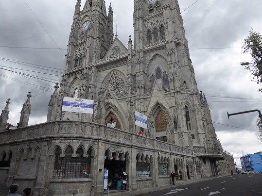 Am Ende der Calle Venezuale, nach realtiv steilem Anstieg erreiche ich eines Wahrzeichen der Stadt, die Basilika. Aufgrund seiner Kolonialvergangenheit und der starken Präsenz katholischer Orden ist Quito eine stark vom römisch-katholischen Glauben geprägte Stadt. Quito ist Sitz des Erzbistums Quito und der Katholischen Bischofskonferenz Ecuadors. |