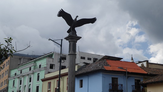 Der Platz, die "Bühne der Stadt", ist gesäumt von geschäftigem Treiben. Insbesondere Schuhputzer bietet in einer langen Reihe ihre Dienste. In der Mitte die Siegenssäule von Pichincha.Heute verzichte ich darauf, insbesondere, weil ich diese Dienstleitung bei Turnschuhen für realativ sinnlos halte. E |
