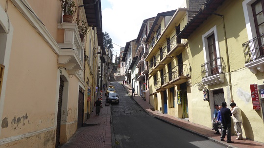 Flug nach Quito dauert nur 30 Minuten. Besser als der Bus. In Quito dann wieder nur freundliche Menschen und eine junge Dame, die mir für 12 $ eine Busfahrt vom Flugplatz mit anschließender Taxifahrt ins Hotel verkauft. Das klappt auch alles, nur die freundliche Taxifahrerin findet das Hotel Kaia nicht. Es dauert eine Weile, denn auch die Zentrale weiß nicht weiter. Zum Ausgleich schenkt sie mir noch eine Fahrt zu einem kleinen Laden, in dem ich mich mit einem Sandwich und Bier versorge und ich bedanke mich mit 3 $ Trinkgeld. |