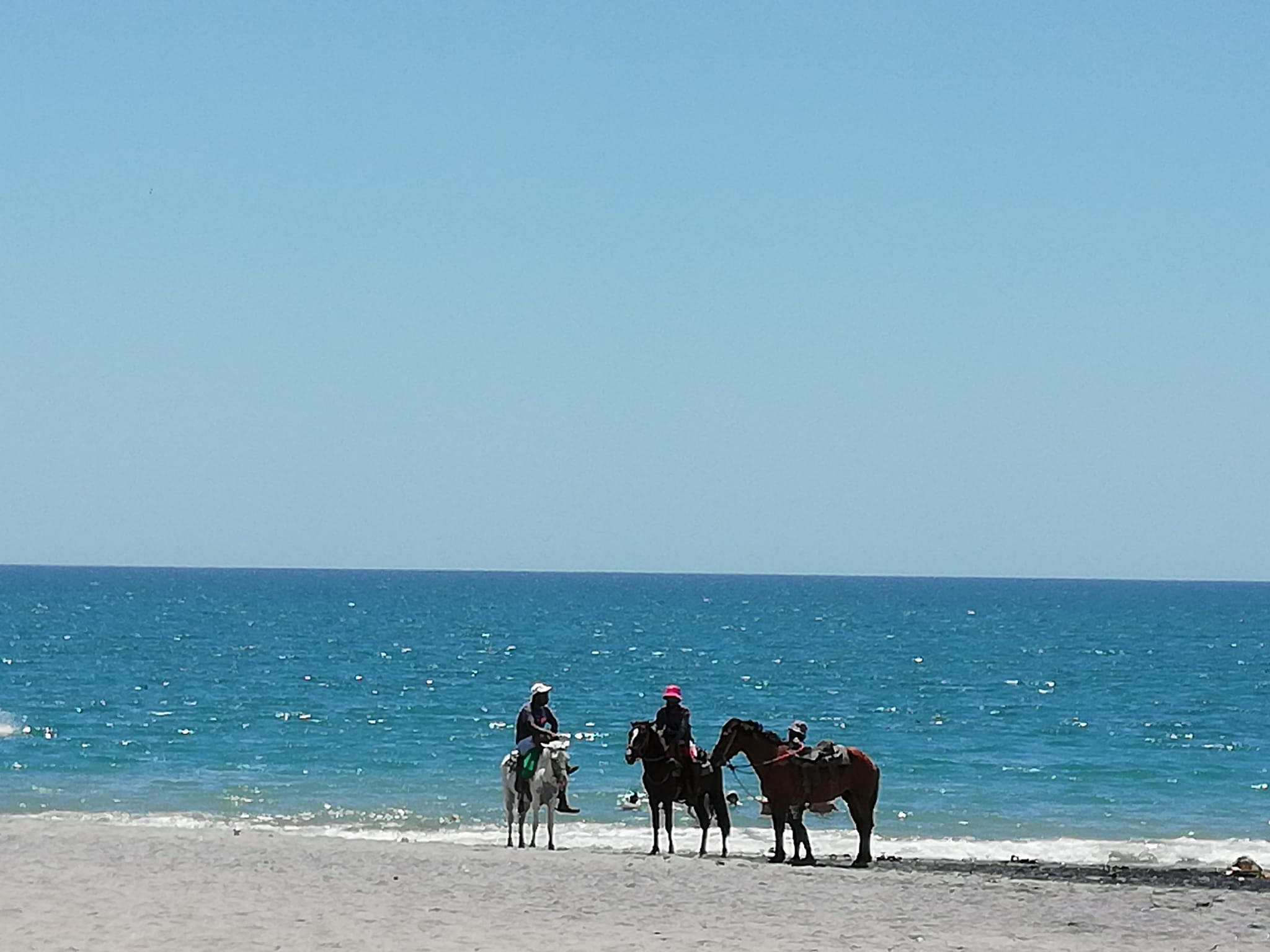Strand und Liegen gehören zum Hotel, genau wie drei Pools (einer als Poolbar). Der Strand wird aber auch von Pferdevermietern und Händlern genutzt. Obwohl wir selbst keine Lust zum Reiten haben, es sieht elegant aus. |