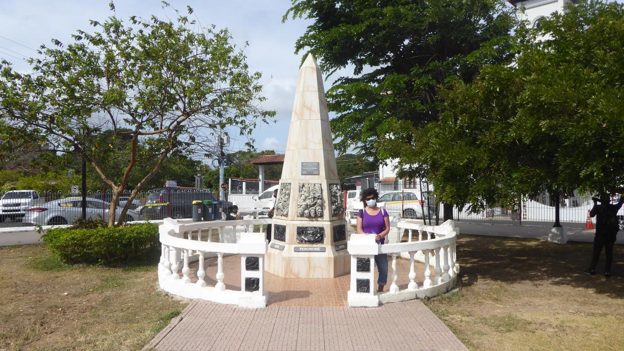 Im Park gibt es verschiedene Denkmäler. In der Mitte ist ein Pavillon. Dieses Denkmal zeigt die verschiedenen Länder, die unter Simon Bolivar von den Spaniern befreit wurden. |