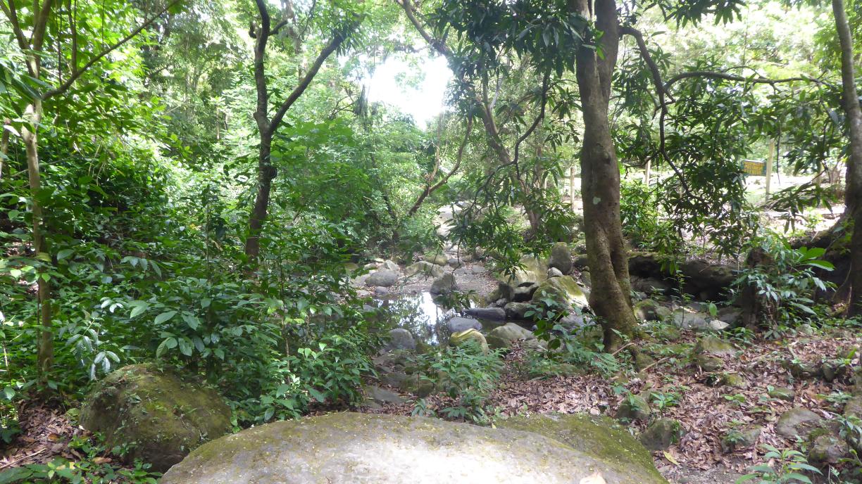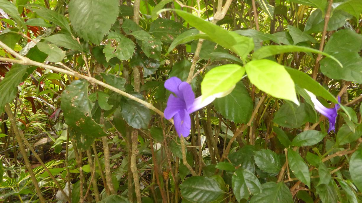 zugemüllt. Der erste Teil des Weges ist bequem und sehr schön. Es erinnert an Regenwald, sehr bunte Pflanzen und Tiere, aber letztere leider für die Kamera oft zu schnell. Keine Frage, wir sind in Mittelamerika. |