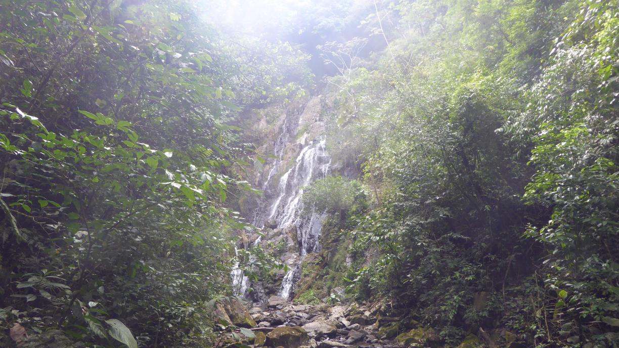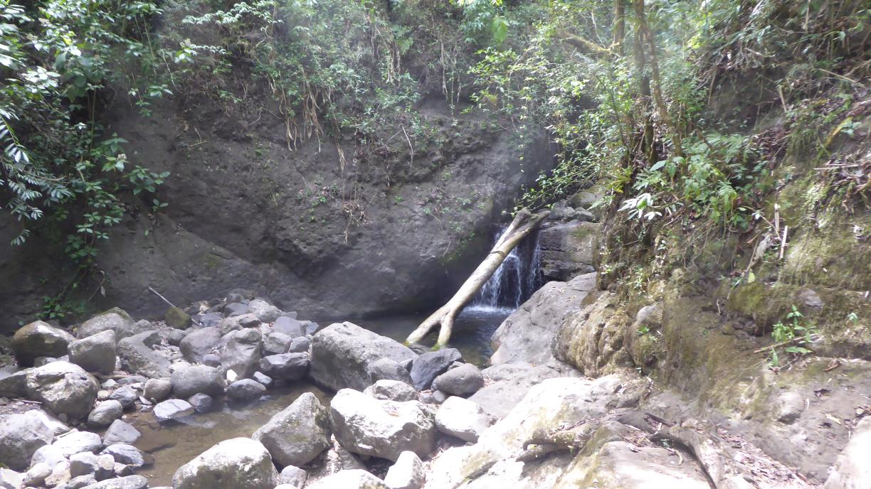 Wir wandern noch etwas weiter, um die Wasserfälle zu besuchen. Bis El Sapo gelingt das noch ganz gut, aber dann wird der Weg steinig und die Steine sind voller Schlamm. Die Wanderung wird halsbrecherisch und wir brechen ab. | |||