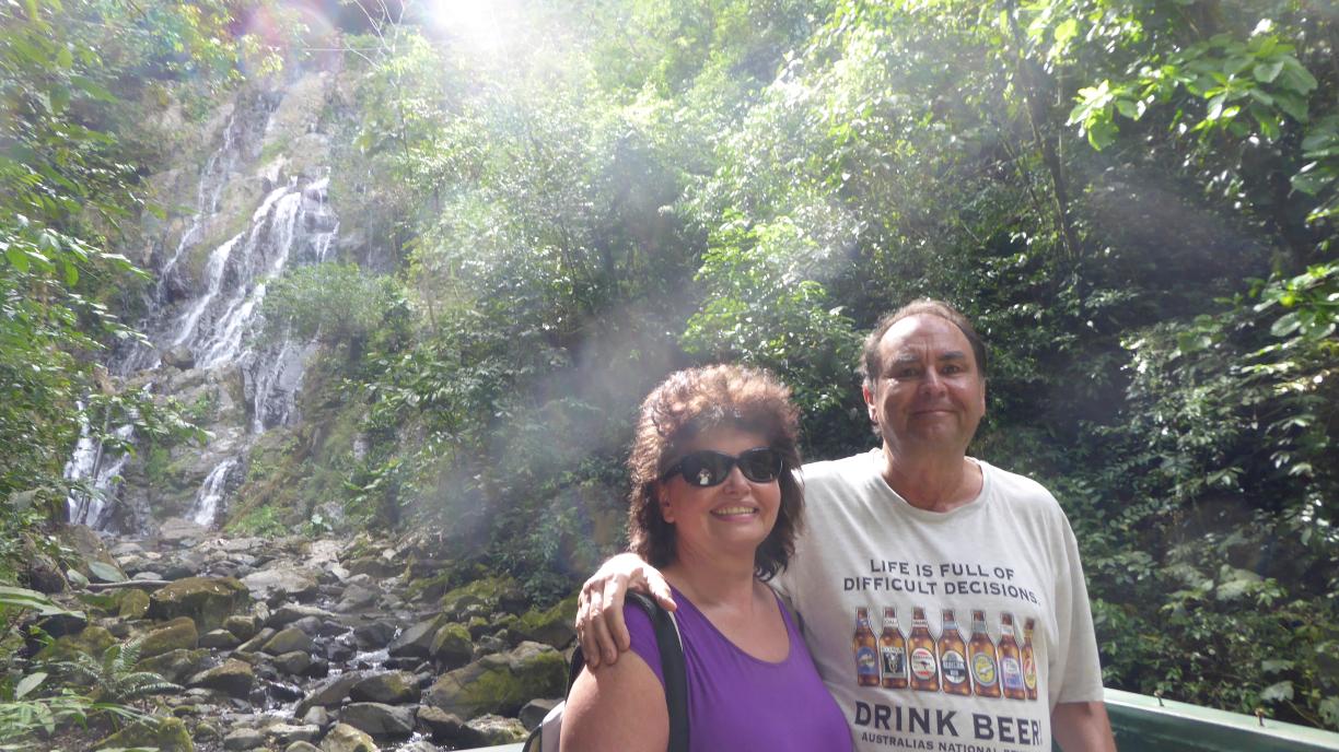 Der Wasserfall Chorro El Macho Ganz in der Nähe liegt eine Gebiet mit dem Wasserfall Chorro El Macho. Auch hier muss man Eintritt bezahlen, $ 5 pro Person, wenn man nur wandert um den Wasserfall zu sehen. Außerdem könnten man noch in einem Natursee baden und an einem Seil Zipline "fliegen". Darauf verzichten wir. Also nur wandern, und das dauert incl. Fotos und so weiter maximal 30 min. Der Weg ist teilweise rutschig, aber mit Seilen gesichert. |