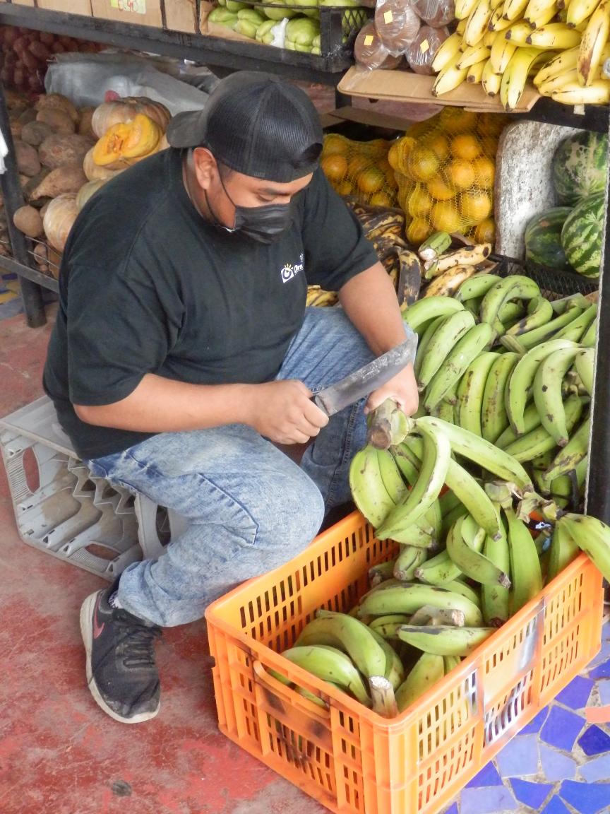 ![]() Hier schnippelt einer auf dem Markt Bananen. Eine Frau bemalt Ostereier, wir fühlen im Geiste der Sorben. |