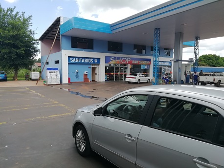 Mietwagens, Gabi zu einer Touristenberatung. VW-Golf steht bereit, alles OK. Es gibt ein Navi, allerdings ist das eigentlich ein Handy mit einer speziellen App. Bedienung ist nicht ganz einfach aber das wird sich schon finden. Versuche, mit VISA oder EC Geld an einem Automaten zu ziehen scheitern, die Karten werden nicht erkannt. Also tauschen wir Euro gegen Guarani im Wechsel von 1 zu 7000. Wir sind schnell Millionäre. Die erst Panne dann am Auto. Das Handy (Navi) ist leer und schaltet sich aus. Zurück zum Schalter, Handy kurz laden, bringt nix. Neues Handy, auch nicht voll. Klar die laden die nicht und Navis werden selten verlangt. Mein Fehler, ich hoffe auf die USB-Buchse am Autoradio, eine Kabel fürs Handy ist dabei. USB-Buchsen an Autoradios schaffen das Laden nicht, auch nicht langsam und so ist das Handy leer noch bevor wir aus Asuncion raus sind. Gut, die erste Etappe von 330 km nach Ciudad del Este ist relativ klar und es gibt unterwegs auch Schilder. Nachdem wir den Stadtkreis Asuncion hinter uns haben fängt die Fahrt an Spaß zu machen. Die Landschaft ist saftig grün und lieblich und die Straßen sind auch ganz OK. |