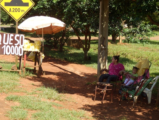 Ziel haben wir nicht, die grobe Richtung ist Conception. In Paraguay ist Licht in Städten Pflicht und so erleben wir die erste unangenehme Begegnung mit der hiesigen Polizei. Wir werden also angehalten, und ein Typ macht uns auf unser Vergehen aufmerksam. Wir entschuldigen uns, aber er will die Papiere, einschl. Pässe. Und dann will er 900000 in Worten Neun hunderttausend Guarani, also umgerechnet 140 Euro. Das nervt uns, vor allem, weil wir wissen, dass er sich das Geld sowieso nur einsteckt. Überall wird für recht wenig Geld Käse verkauft. Der schmeckt hier wirklich gut. |