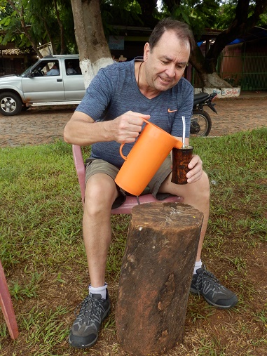 Am Ende des Tages sind wir in San Estanislao 300 km von Ciudad del Este entfernt. Wir finden für 30 Euro umgerechnet ein nettes aber einfaches Hotel und ein Kaffee mit leckerem Kuchen. Dann noch jeder ein Empanada und ab ins Bett. Aufregender Tag aber schön. |
