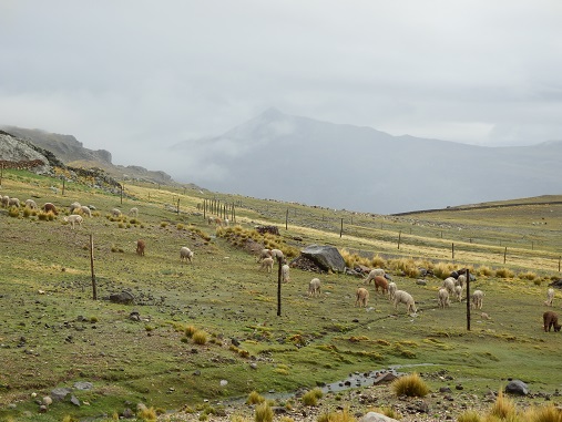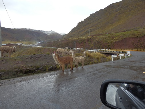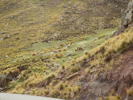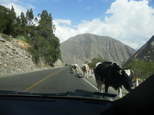 Langsam ändert sich die Landschaft. Es wird grün. ![]() Immer wieder auch Nutztiere auf der Straße. Kühe, Schweine, Lamas. |