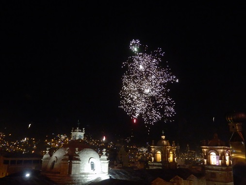 notendige Gleichgültigkeit aufkommen. Es ist ja Sylvester. Wir legen uns um neun ins Bett und stellen den Wecker auf dreiviertel zwölf. Eine Stunde geht die Show, also an Feuerwerk sparen die Peruaner nicht. Ein brillanter Einstieg für 2016. ![]() ![]() ![]() |
