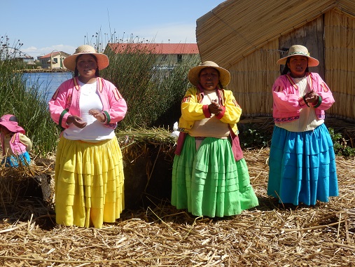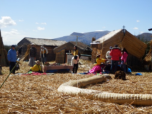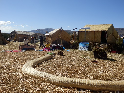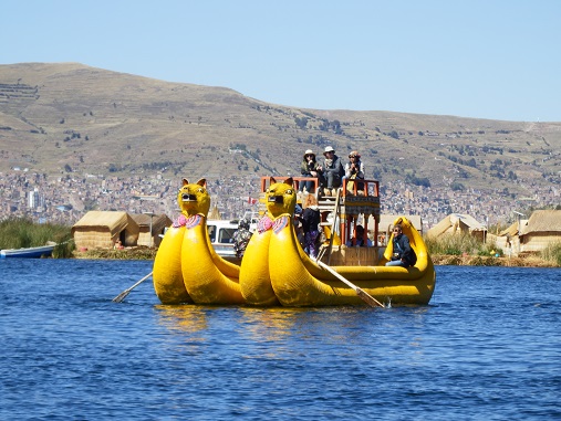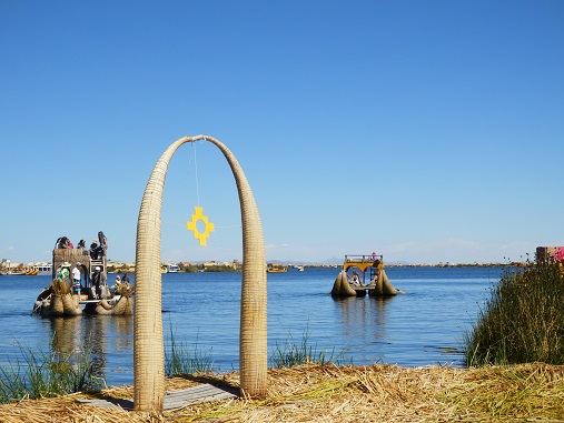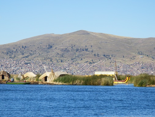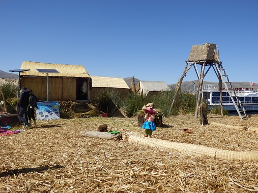 mit dem Schiff es zu den Uros, die auf den Islas Flotantes leben. Die