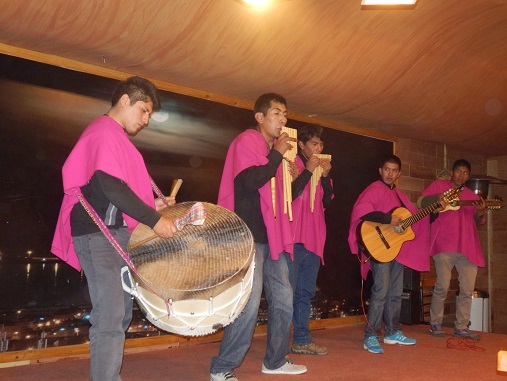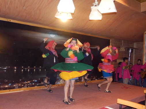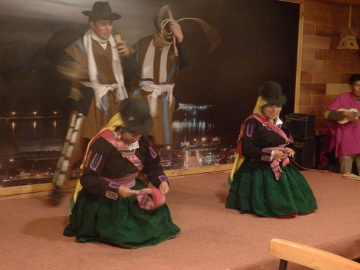 Oben gehen wir in ein Restaurant und werden mit leckerem Rührei bewirtet. Auch Fisch steht zur Auswahl. Bezahlen müssen wir das natürlich extra. Auf der anderen Seite der Insel geht es wieder runter zum Schiff. Gegen 17°° Uhr sind wir wieder in Puno. |