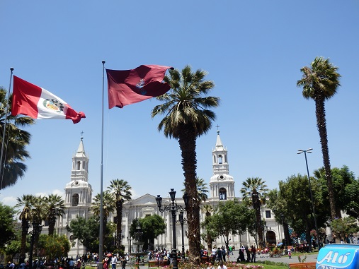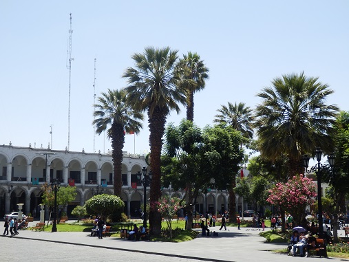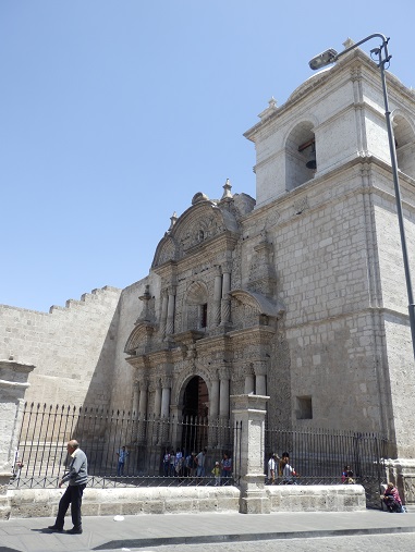 ![]() ![]() Das Zentrum von Arequipa ist recht schön, wir machen ein paar Fotos und gehen in eine Konditorei. Eine Spezialität hier ist Käseeis. Gabi probiert das Zeug, ich esse lieber Apfelkuchen. Das ist die bessere Lösung, wie sich schnell heraus stellt. |