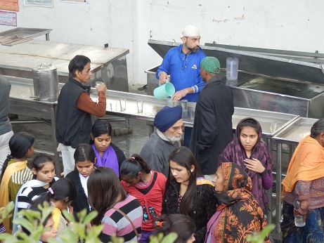 wir eine riesigen Silversterkater haben, dem ist nicht der Fall. So ziehen wir, mit einer kleinen Karte bewaffnet, zu Fuß alleine los. Dehli ist auch die Stadt der Affen. Jedenfalls sieht man die putzigen Kerlchen an allen Ecken unf Enden. Die Bewohner finden das oft nicht so putzig und machen auch manchmal Jagd. Ansonsten ist buntes Treiben. Heute am Neujahrstag geben alle Hotels und Gaststätten auch kostenlos Essen aus. Vor unserem Hotel bekomme ich als armer Ossi einen Pappteller mit Hirse. Der Genuss dieser Spende bringt mir dann eine schlaflose Nacht ein. Wegen der Terrorgefahr, in Mumbai war ja dieser schreckliche Überfall auf ein Hotel, sind an den Hoteleingängen Fachleute mit Suchgerät in Betrieb. Auch auf der Straße gibt es die altbekannten Schleusen, die hier aber nur grotesk wirken. Motorisiertes Hauptverkehrsmittel ist das TucTuc. Auch wir lassen damit ein wenig durch die Kante fahren. Muss man erlebt haben. |