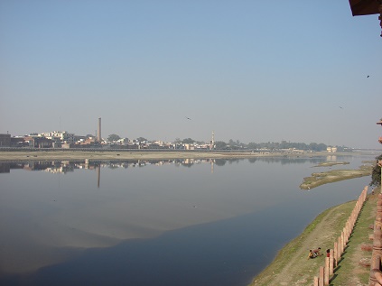 Tajmahal. Das ist unser nächstes Ziel. Von hier hat man auch einen schönen Blick auf den Yamuna-Fluss. |