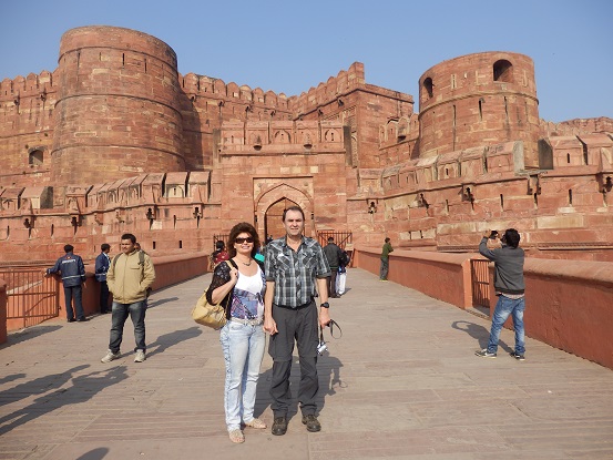 (so ähnlich wie in Dehli) ist unser nächstes Ziel. Es liegt auf einem von Menschenhand aufgeschütteten Hügel am Ufer des Yamuna-Flusses und ist nur etwa 2,5 Kilometer vom Taj Mahal entfernt. Zum Abschied gibt uns eine junge Inderin noch ein Lächeln mit auf den Weg. |