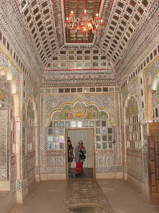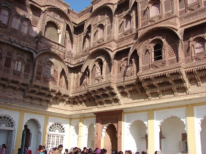 Nachmittags kommen wir in Jodpur, der Blauen Stadt an. Traditionell kennzeichnete die Farbe Blau die Zugehörigkeit der Bewohner zur Kaste der Brahmanen, allerdings haben heute auch Nicht-Brahmanen diesen Brauch übernommen. Man sagt der Farbe nach, dass sie ein effektives Mittel zur Abwehr von Moskitos sei. |