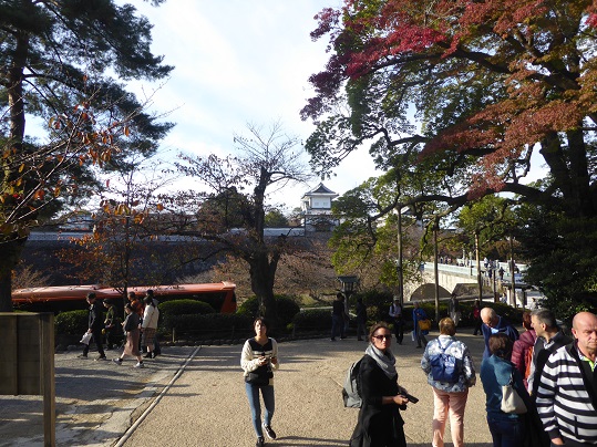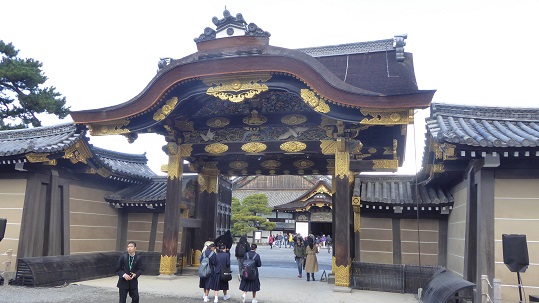 Letzte Station ist das Schloss Nijo-jo, ehemalige Kaiservilla. und Weltkulturerbe. Das Schloss hat einige wichtige wichtige Ereignisse der japanischen Geschichte in den letzten 400 Jahren miterlebt. Die Burg wurde 1601 auf Befehl von Tokugawa Ieyasu, dem ersten Shogun erbaut, bzw. 1603 fertig gestellt. Ursprünglich entsprach ein ShÅgun ungefähr einem europäischen Herzog. Als 1185 die erste Samurai-Regierung in Kamakura gegründet wurde, übernahmen die Samurai die eigentlich politische Macht und die Kaiserherrschaft wurde formalisiert. Der Leiter dieser Regierung erhielt den Titel Seii-Taishogun, kurz Shogun. Ein Shogun entsprach etwa einem Generalissimo oder Oberbefehlshaber. Eigentlich sollte die Dauer dieses Amtes auf die Zeit kriegerischer Auseinandersetzungen begrenzt bleiben, nach 1192 wurde es zum festen Amt des politischen Herrschers in Japan. 1867 wurde auf Schloss Nijo-jo das Ende der politischen Herrschaft des Tokugawa-Shogunats und die Wiederherstellung der Macht des Kaisers ausgerufen. |