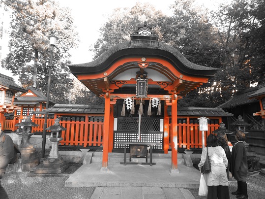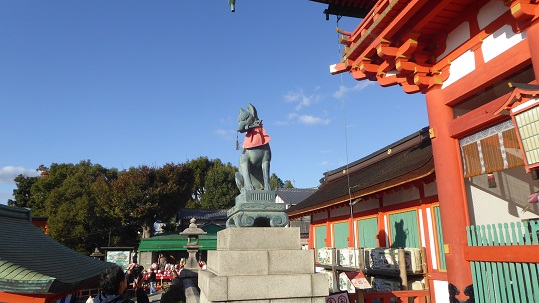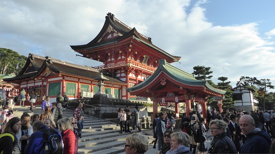Am Nachmittag geht es zum Fushimi Inari Schrein. Er ist einer der etwa 40000 Inari Schreine des Landes, wurde 711 gegründet und ist 5 Shinto-Gottheiten gewidmet. Leider haben wir für diesen sicher sehr interessanten Weg keine Zeit. |