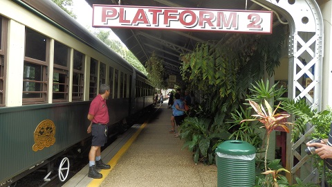 wieder in Cairns auf dem Bahnhof. Von da aus ist es nicht mehr weit