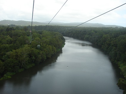 Skyrail die uns dann 7,5 km über den Regenwald nach Kuranda