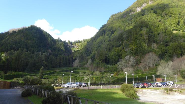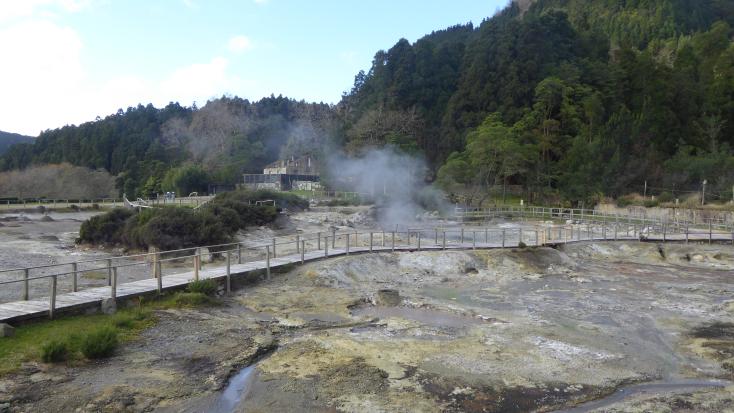 Ich will nach Povoacao und fahre wieder am Lagoa das Fumas. Hinter dem biegt man links ab und erwischt einen Park mit Caldeiras. Eintritt mit Auto 3 Euro. Die Bilder sprechen für sich selbst. Manche der heißen Quellen tragen Namen, Namen von Geschäften, Restaurants, Hotels. Wahrscheinlich kann man das hier mieten. |