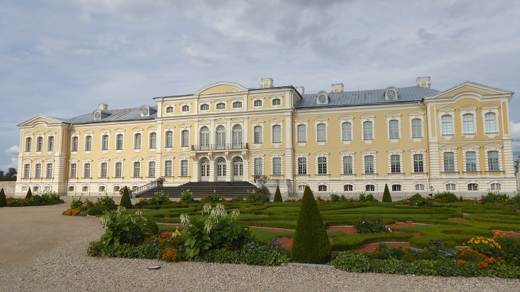 zum Schloss Rundäle bei Bauska. Das sind noch mal ein Grenzübertritt, in Europa Gott sei Dank inzwischen ein Lacher und 70 km. Was mich da inmitten der lettischen Feld- und Wiesenlandschaft erwartet ist jeden Umweg wert. |