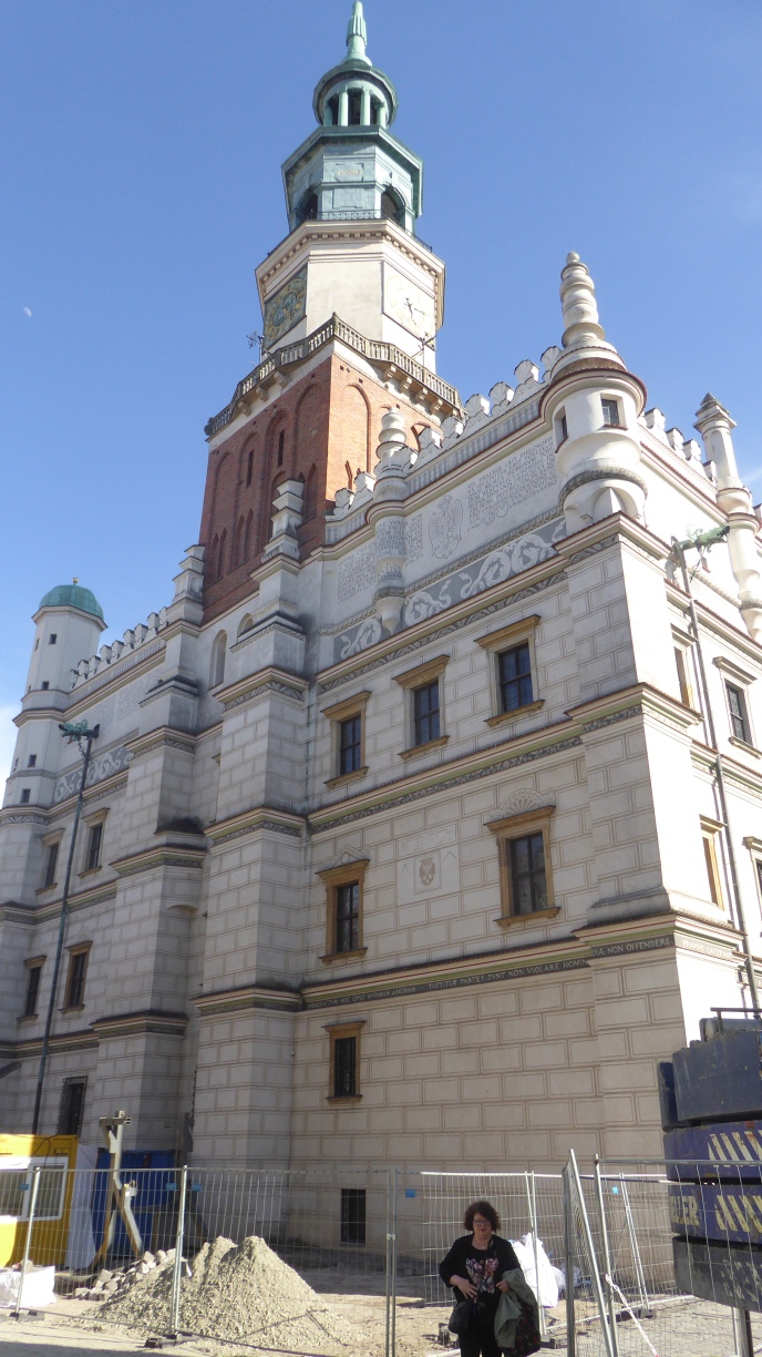 Der alte Markt mit dem Alten Rathaus (rechts) steht schwer unter Restauration, wie vieles in Polen. |