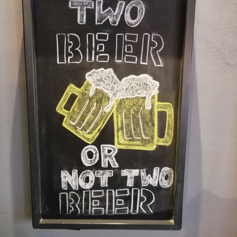 ![]() Im Speisesaal des Hotels dieser sinnreiche Spruch als deutlicher Hinweis auf die hausinterne Brauerei. |